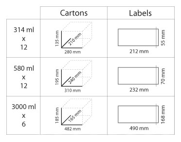 per carton: 12 / 12 / 12 Cartons per container: 3500 / 2000 / 1700 Expiry