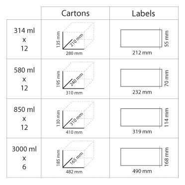 per carton: 12 / 12 / 12 Cartons per container: 3500 / 2000 / 1700 Expiry